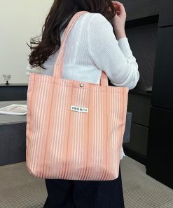 Bags for women’s seaside vacation style rainbow striped shoulder bag spring and summer large capacity canvas bag handbag