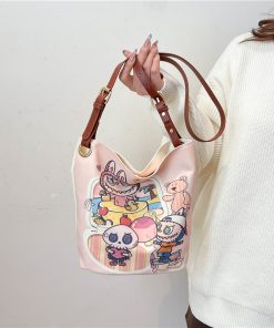 Cartoon large-capacity canvas bag female college student commuting out shoulder bag crossbody bag trendy toy bag