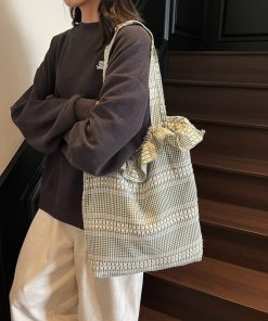 Baby Fashion Plaid Canvas Bag Lazy Style One-Shoulder Armpit Bag Women’s Large Capacity Tote Bag