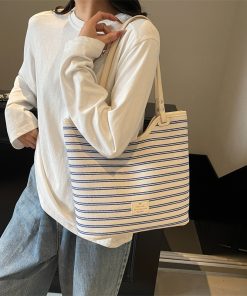 Simple underarm canvas bag, large capacity striped tote bag, fashionable, lazy and versatile travel shoulder bag