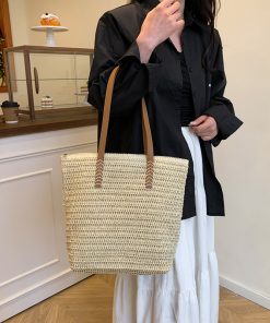 Summer straw woven bags for women commuting large capacity one-shoulder tote bags beach vacation woven beach bag