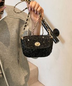 Summer high-end commuting niche mobile phone crossbody small bag women silver sequin chain small square bag