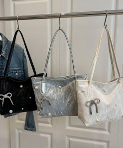 Students’ large-capacity commuting tote bag for class for women’s letters fashionable solid color casual armpit shoulder bag