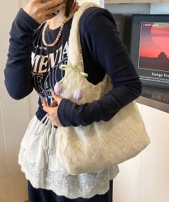 Textured large capacity bag for female college students in class shoulder bag niche design sense commuter tote bag
