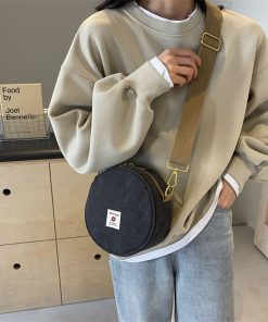 Women’s canvas round bag one-shoulder crossbody bag fashionable and fashionable cute retro fashionable versatile round bag