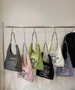 Women’s large capacity single-shoulder carry-on shopping bag embroidered environmentally friendly bag niche design commuter tote bag