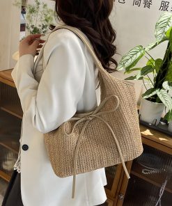 Fashionable large capacity tote bag for women simple casual shoulder bag striped braided handbag shopping bag