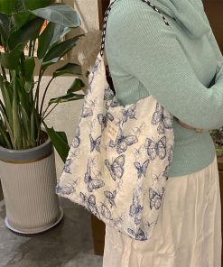 Forest Chinese style canvas handbag shoulder bag fairy lace butterfly student satin tote bag