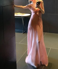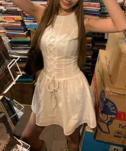 Spring women’s three-dimensional press-pleated waist-closed square collar pullover vest dress