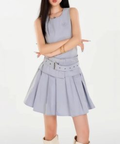 Original design and super slim workwear pleated dress for women’s summer sleeveless vest casual skirt