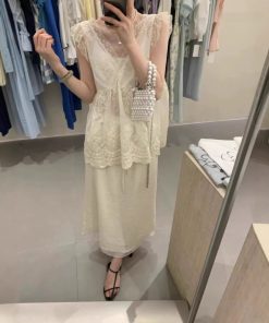Summer women’s French collar sexy lace sling vest loose slim top