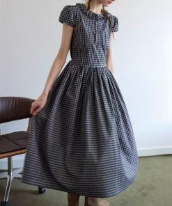 Summer Symphony’ retro plaid decorative earrings micropuff sleeves high waist big skirt dress for women