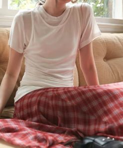 Simple multi-color lycel round neck waist-slimming stacked fake two-piece vest short sleeves