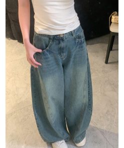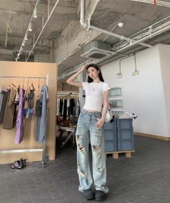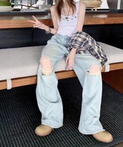 American street ripped jeans women’s spring loose casual pants retro nostalgic loose wide-leg pants trousers