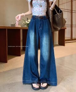 Real photo~ American retro wide-leg jeans for women with high waist loose design floor trousers