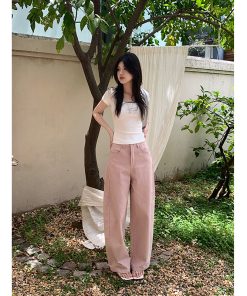 Real photo of pink wide-version scimitar trousers summer loose casual wide-leg work pants pink pants