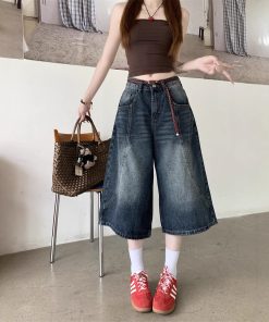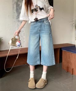 Real photos of summer loose and casual wide-leg pants for women with high waist small jeans trendy