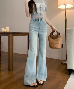 Real photos of summer loose and slim light color versatile jeans high-waisted wide-leg trousers