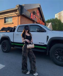 Real shot of retro camouflage denim wide-leg work pants for women in spring and summer American hot girls high waist slim casual trousers trendy