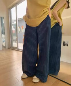 Real shot of loose and slim high waist versatile floor striped jeans for women casual and fashionable floor trousers