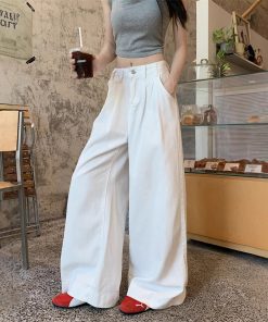Real-life American white jeans for women in summer high waist loose drooping wide-leg floor trousers