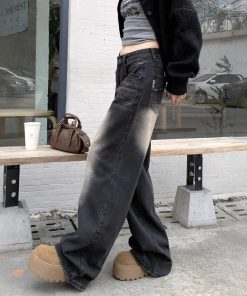 Real shot~Retro wash wide-leg jeans for women with niche design, loose high waist floor trousers