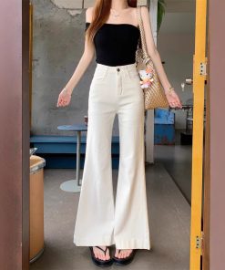 Real shot~White flare jeans for women in summer American loose small person without legs flared trousers