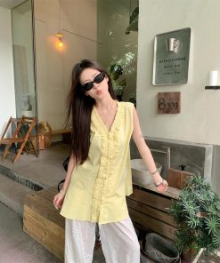 Real photos of Korean loose casual shirts in summer in women’s design and slim tops