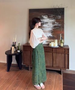 Real shot~ Spring retro new Chinese lantern sleeve shirt + high-waisted lace-up one-piece skirt suit