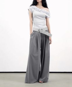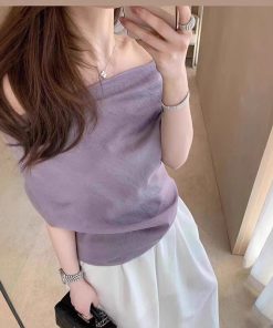 Purple top one shoulder short sleeves for women in summer irregular French large size atmosphere