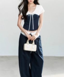 Rabbit ears well-behaved short-sleeved shirt three-color summer slim shoulder top makes you look thin