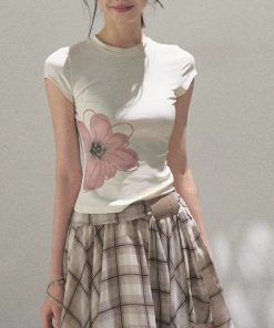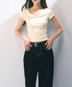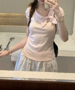 Short-sleeved women’s shirt for women in summer waist-hugging and slimming knitted versatile solid color top