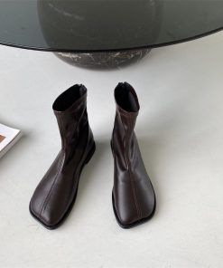 Niche design soft leather square toe thick heel short boots for women chain Martin boots trendy cool single boots stretch thin boots