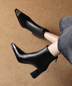 Pointed short boots for women in autumn and winter, and naked boots, metal toe simple short rear zipper Martin boots