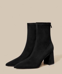 Pointed toe thick heels for women in autumn and winter high heels thin Martin boots plus velvet elastic socks single boots