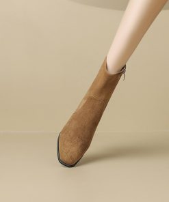 Retro British style thick heel Martin boots autumn and winter suede square toe side zipper short boots thin stretch boots
