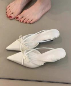 French pointed toe and thin heeled half slippers wearing slim sandals mules with shallow mouth and no tired feet for women