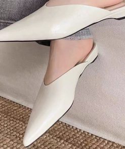 Pointed soft leather low heel comfortable lazy half slippers summer simple temperament sandals fairy style high heels