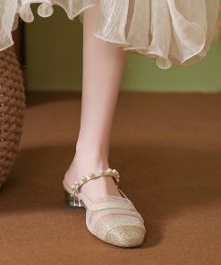 Pearl bag head half slippers for women in summer sandals thick heel French gentle mules for women