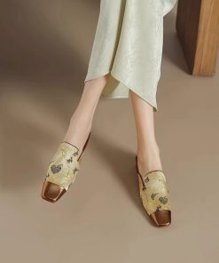 New Chinese style Chinese style half-slippers for women with embroidered thick heels high-end low-heel color-blocking muller sandals with skirt