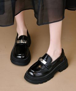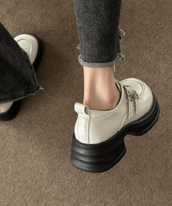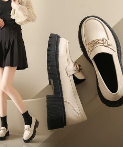 Locking British style small leather shoes for women in spring and summer single shoes thick sole height-enhancing simple casual shoes for women