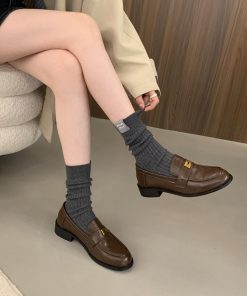 British leather shoes for women brown retro shoes for beans shoes for autumn and winter high-end single shoes thick heel women’s shoes