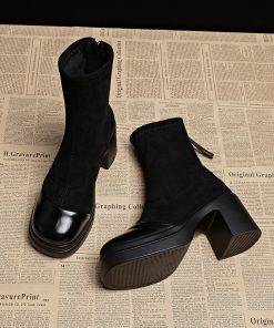 Slim boots for women in spring and autumn Korean small ankle boots for autumn and winter women’s shoes suede elastic boots high heel short boots