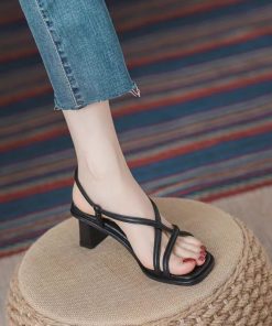 Sandals for women wearing summer soft sole mid-heel simple temperament with skirt thick heel French high heels