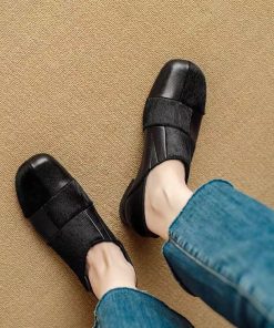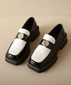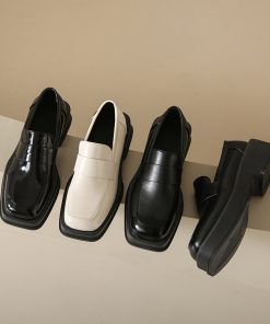 Thick-soled black square-toe British style small leather shoes for women’s spring and autumn simple single shoes