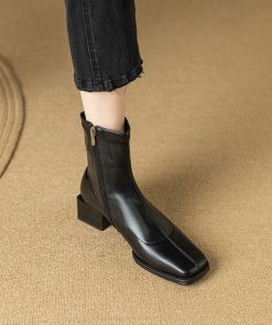 Thick heels high heels women’s fashion boots simple winter square toe niche design French Martin boots