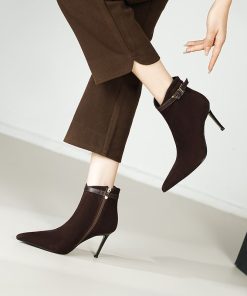 women’s autumn and winter temperament simple Martin boots thin heels slim nude boots without tiring high heels