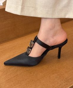 French elegant slim heeled half-slippers for women in summer wear pointed high heel sandals with one-length rhinestone sandals for women