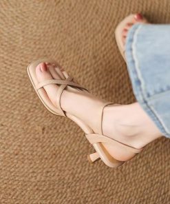 French beautiful sandals for women in summer, soft leather, thick heels, soft soles, and no tiring high heels with skirt