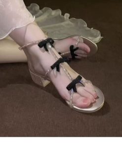 Beautiful rhinestone sandals for women in summer with skirt for women in women’s rhinestones one-strip simple thick heels high heels